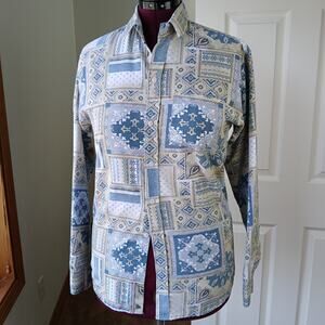 Dam Wear Paisley Cream Men's Button up Shirt L Vintage long sleeve soft cotton