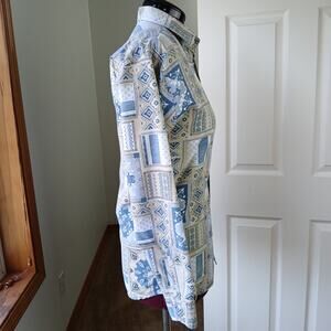 Pre-loved; EUC, excellent VINTAGE condition. two small brown stains on the upper left sleeve, mostly blend with the pattern on the outside, but can be seen clearly on the inside. pictured.