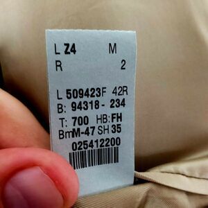Please take a moment to compare the measurements above to a blazer/sport coat/suit jacket you already own to ensure proper fit. Most preowned menswear have been altered in some way