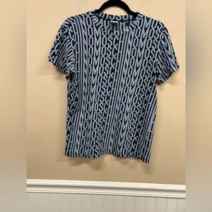 Damaged Moschino Underwear Black Gray All Over Print Fitted T Shirt Size XL See photos for measurements to insure fit