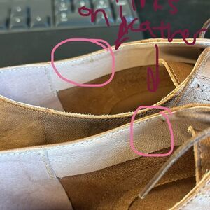 *This item is damaged. There are marks on the leather on both the left and right shoe. Please refer to images 2 and 3 for reference.