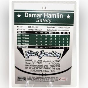 🏈🏈 Damar Hamlin 2021 Sage Premier Draft Rookie Card "Red"