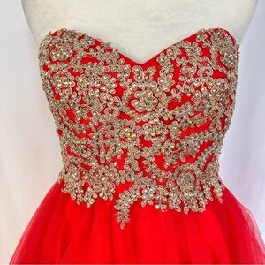 Damas By Tiffany Designs Beaded Dress Sz Small Tulle Little Red Short Lace Corset. Prom homecoming cocktail. For formal, ballgown party. Adjusted drawstring at the back. Pls see photos closely for further details about the item.