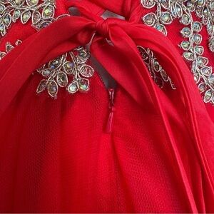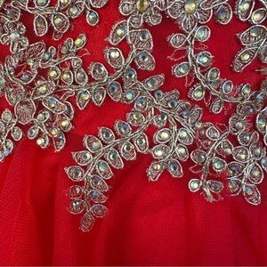 Damas By Tiffany Designs Beaded Dress GownSz Small Tulle Little Red Lace Corset