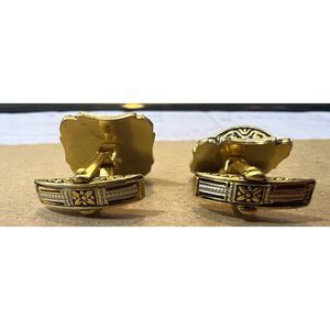 Damascene Toledo Cufflinks Spanish Gilt Swivel T Bar Goldtone Faux MOP Inlay