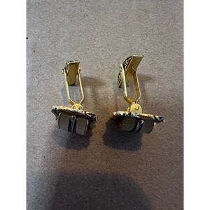 Gold plated with fine black & white detailed pattern and faux white Mother of Pearl inlay.
