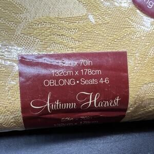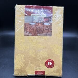 Damask Fabric Tablecloth Autumn Harvest 52x70 Oblong Oval Gold Leaf Fall