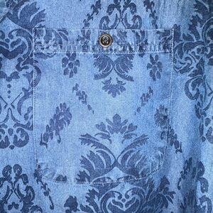 Damask Print Denim Button Down Shirt Roll Tab Long Sleeve