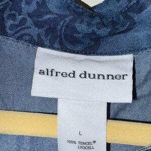 Keywords: denim shirt, button down shirt, damask print, long sleeve shirt, roll tab sleeves, casual top, women's shirt, blue denim, patterned shirt, chest pocket, comfortable shirt, stylish top