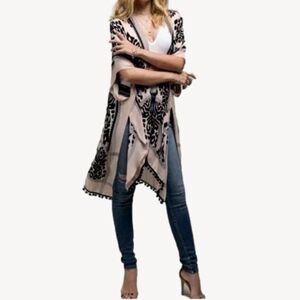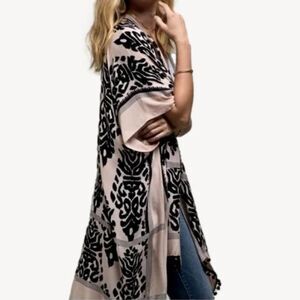 Damask Print Kimono ~ Mini Pom-Pom Trim ~ Bohemian Elegance ~ One Size ~ NEW