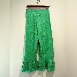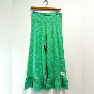 A whole lot more fun than your basic bottom, these capri ruffles give you the comfort of a pant and the fun of summer. These are a fun green and light blue that will be a great addition to your closet.