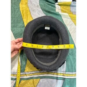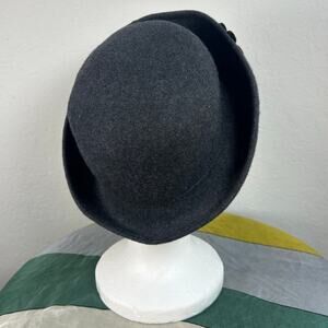 Dame- Vintage Wool Hat- Flower Cutout applique front- black gray- OSFM