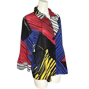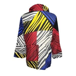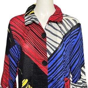 Damee Artsy Patchwork Button Up Top Women's L Tunic Wire Collar Abstract Vibrant