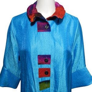 Damee Inc Lagenlook Cobalt Blue Art To Wear Wire Collar Topper Jacket Womens XL