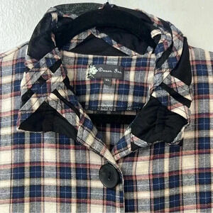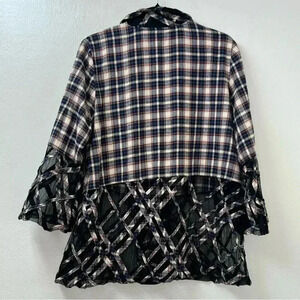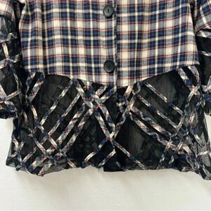 Damee Inc Plaid Shirt Jacket XL Ruffle Collar long Sleeves Flannel and Mesh