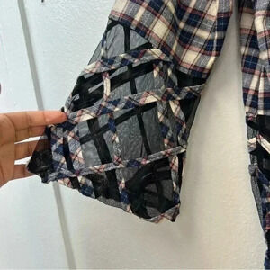 Damee plaid shirt jacket Ruffle sleeves oversized buttons mesh detail. Great condition