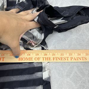 * Dark Navy Blue organza material alternating between sheer & opaque fabric stripes with white & gray floral pattern