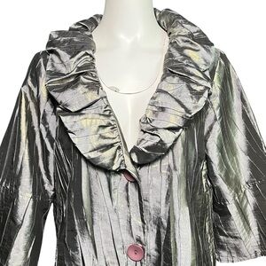 Damee Inc Wide Collar Swing Jacket with Pockets Silver Platinum Size M Shimmer