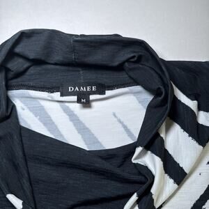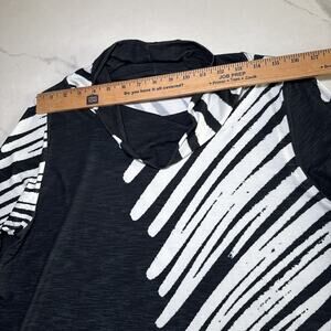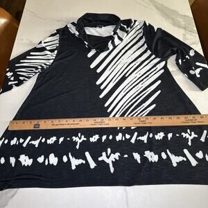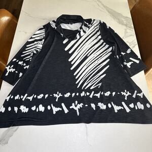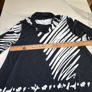 Damee Top Women Medium Black White Abstract Graphic Cowl Neck Flowy Artsy Blouse