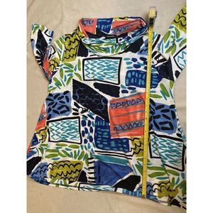Damee Tunic Abstract Artsy Lagenlook Size Large Funnel Neck 3/4 Sleeve