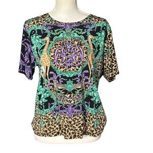 Damee Twin Set Size Large Purple Long Sleeve Animal Print Artsy Boho Statement