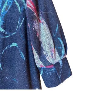 Damee Wearable Art Swing Coat Sz Large 3/4 Sleeves Collared 3 Buttons