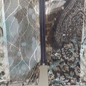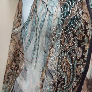 colors brown, blue-green accents & silver tone Shimmer beading. Beautifully designed.