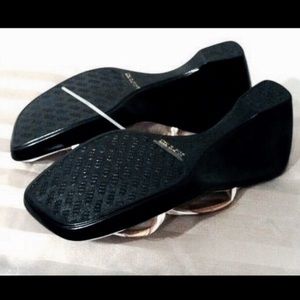 NWT Damiani's Wedge Sandal / New & Unworn / Clear Yellow Straps / 3" Black Wedge Heel / Made In Italy