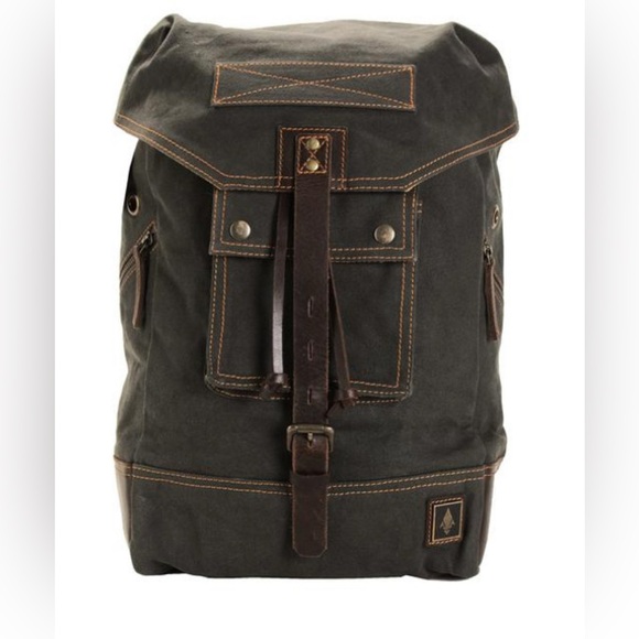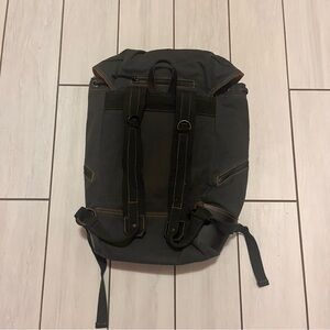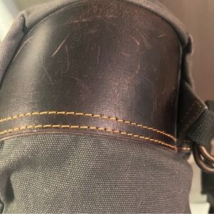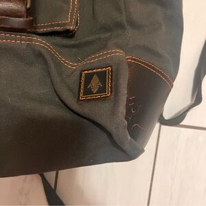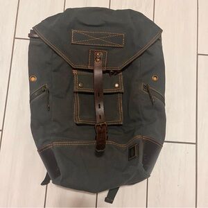 This backpack is a workhorse! Very sturdy and well made in New Orleans. In good used condition. The leather has scuff marks as shown in the pictures.