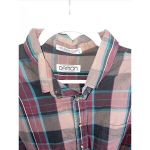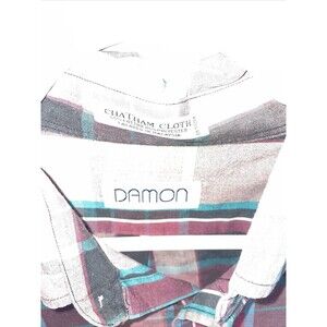 This mens purple striped Damon dress shirt is in great shape! This item comes in a size XL Armpit to armpit is 26 Armpit to sleeve is 21 Back of collar to hem is 32 Thanks for looking at our item!