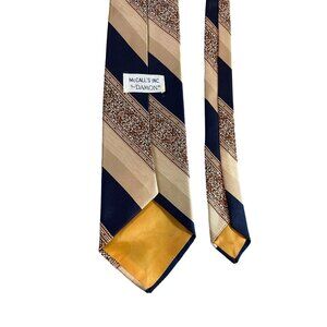 "Damon's Men Neck Tie in black, gold, and burgundy stripe is a perfect work or dad gift. Sized classic 57"-60", it's made for men and crafted from 100% silk.