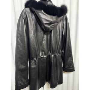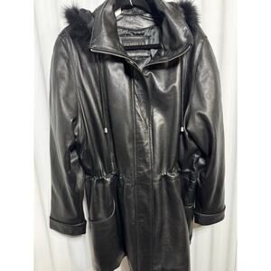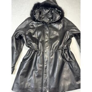 Cold-weather glamour, the New York way. This Damselle lamb-leather coat—with its fox-fur-trimmed hood and waist-cinching silhouette—feels equally right on a Midtown sidewalk or a candle-lit dinner downtown. Buttery-soft genuine leather, fully lined, with deep pockets and hidden zip-snap front. Women’s Large, beautiful vintage condition. A forever piece for your closet.
