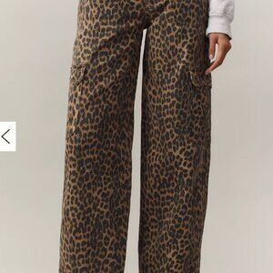 Featuring an all-over leopard print design, these classic high-rise cargo pants feature side pockets with a wave top and special "Damson" embroidered back pocket detail.