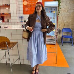 Damson Madder is redefining feel-good fashion with bold, playful and sustainable design. You can channel retro charm with the Mia Midi Dress, featuring a shirred bust, tie-up bow detail, and vibrant blue-and-red stripes. The real kicker? You can wear it two ways: strapless or as a halter-neck. The choice is yours!