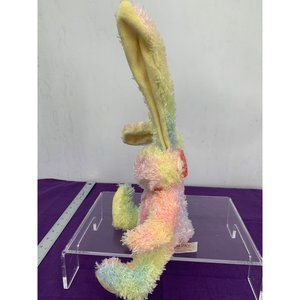 This collectable Dan Dee bunny is a tie-dye pastel delight, with a pink nose and bow, and yellow poseable ears. Standing 17" tall, this plush is perfect for collectors and kids alike.
