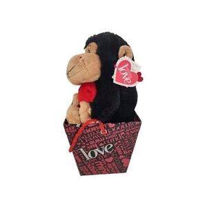 This is a brand new Dan Dee Collectors Choice plush monkey measuring 14 inches. It is designed in a medium size and holding a plush heart. The monkey comes in a love-themed box, making it a perfect gift for someone special. This toy is recommended for children aged 3 and up and is part of the Gorilla character family. Made in China, this plush monkey is a charming addition to any collection.