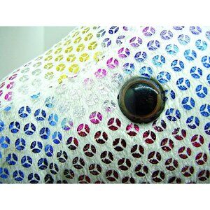 Minor spot on the left side of unicorn's face - see photo, barely noticeable due to the multicolors - should come out with spot cleaning - I will let new Buyer do this since some are allergic to products