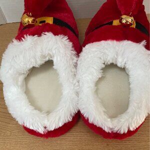 Soft and cozy slippers with festive Santa design and jingle bell accents. Ideal for holiday lounging or themed events.