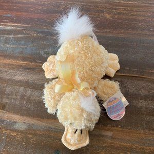 This Yellow Ducky is lying on his tummy and had white fuzzy hair and tail. is in like new condition with original tags and hand hook - weighted bean bag bottom