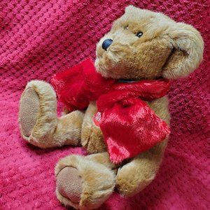 Dan Dee Collectors Choice Holiday Teddy Bear that Sings 'We Wish You a Merry Christmas' Plush Stuffed Animal in Super nice clean n' fresh condition. This is a sitting bear that is about 9" tall, has nice suede cloth paw pads. Pretty light brown color wearing a Faux Fur Red scarf, lined with Green. S7 0245