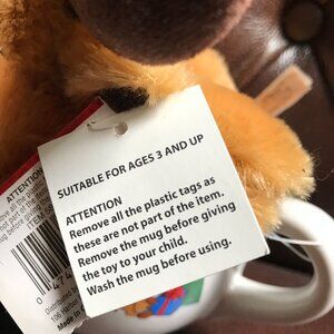 Dan Dees TM Collector's Choice Christmas themed mug with Reindeer stuffed animal inside. 12 oz mug. New. never used. Has colorful scarf. Dishwasher and microwave safe. Joyous pose of reindeer. Great Christmas gift!