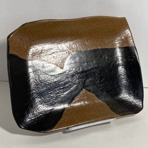 Dan Eash Art Pottery PA Studio Handmade Brown Glaze Stoneware Slab Tray 10x7.5in