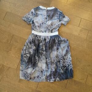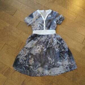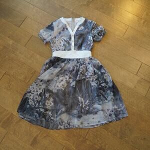 Dan Munier A-Line Dress Womens Small Gray Floral Print Empire Waist Back Zip