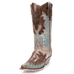 This beautiful handcrafted DP3773 Dan Post Women's All Eyes On Me Western Boots feature metallic brushed leather, striking turquoise stitching, and floral embossed leather overlays throughout. Comes with a snip toe and Soft Strike Removable Orthotic.