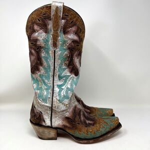 Dan Post All Eyes On Me Turquoise Cowgirl Boots Pointed Toe Women’s Size 6.5