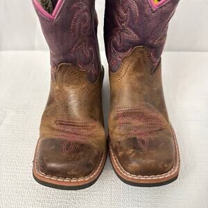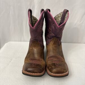 Dan Post Boots Girls Size 12 D Majesty Leather Square Toe Purple Brown Kids