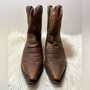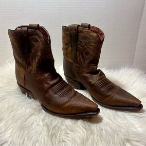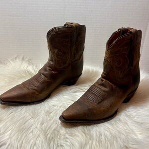 Stylish Dan Post ankle boots. Rich brown leather with intricate stitching. Perfect for any occasion.
