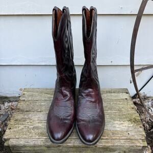 Dan Post Cherry Red Brown Almond Toe Cowboy Western Boots