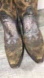 Up for sale is a good condition pair of Dan Post DP3626 Bronze Tooled Floral Leather Cowboy Western Womens Boots. Size 9.5 M, Medium. Made in Mexico. Leather uppers. Good condition leather soles and rubber heels! You won't be disappointed. Outside Approximate Dimensions: 12” inches long heel to toe by 3 3/4" inches widest wide in front of footwear by 2” inches tall heels by 12 1/4" inches tall.