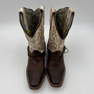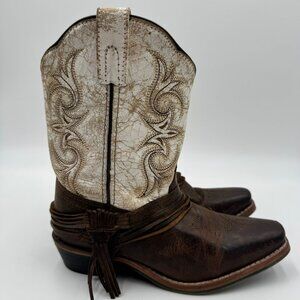 Dan Post Lil Myra Girls Western Boots Brown/Cream Leather Size 3